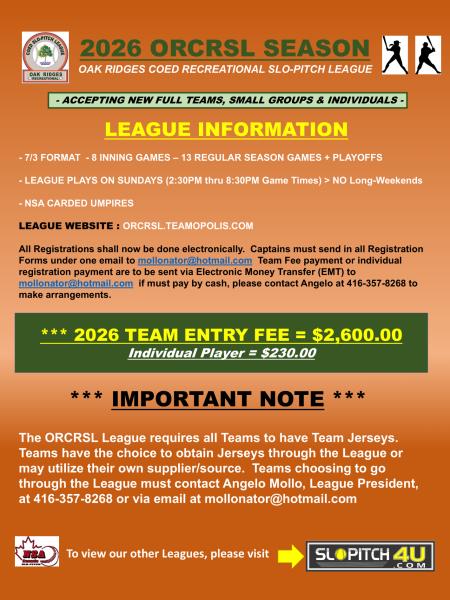 Oak Ridges Co-Ed Recreational Slo-Pitch League